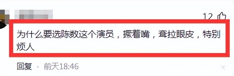 有网友吐槽,“看到陈数的嘴就难受,实在看不下去!弃剧”“为什么要选陈数这个演员,撅着嘴,耷拉眼皮,特别烦人”。