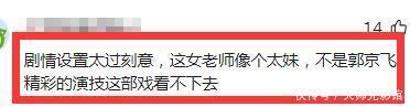“剧情设置太过刻意,这女老师像个太妹,不是郭京飞精彩的演技这部戏看不下去”。