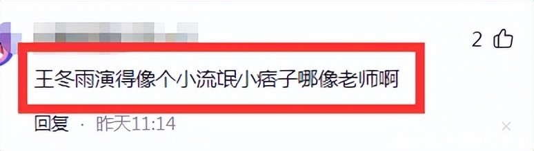 有网友说,“王冬雨颜值演技人设,都非常令人讨厌!”“王冬雨一出场用力过猛,一惊一乍,出戏得很”“王冬雨演得像个小流氓小痞子哪像老师啊”。